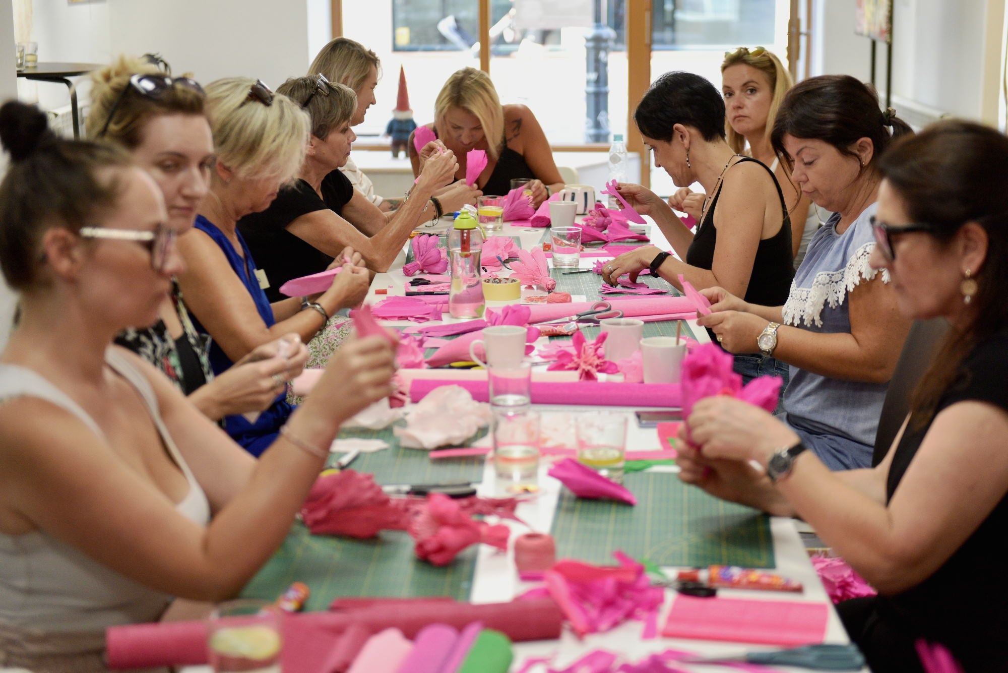 On 24 August 2023, a pink, crepe paper flower-making, workshop was held at Punkt 11, an unusual event for many reasons. Only women were invited to take part in the workshops. Why? To talk about important issues - health, education, the challenges that modern times pose to women, and about their place in society - in an atmosphere of community and creativity, and with a feeling of safety and mutual understanding.
